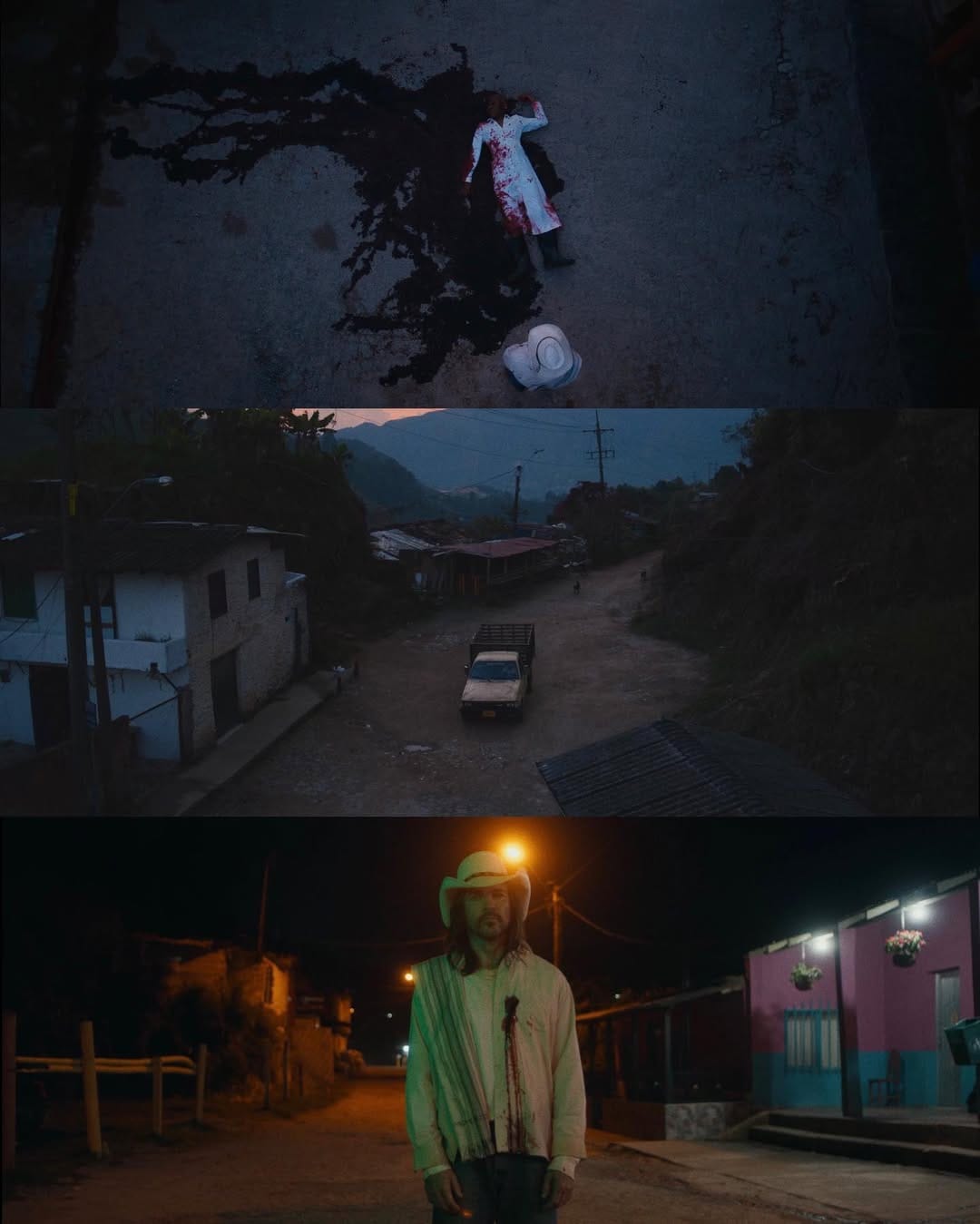 These facts were necessary to validate even more the social and political statement of the music video. On a visual level, the story is portrayed out in the mountains of Medellín in a small town were Mabiland is laid down as a victim of this devastating crime. The image is quite graphic and violent, but at the same time López Mari described it as a scene where there’s certain beauty in the ugliness.